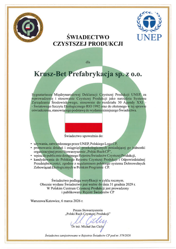 ŚWIADECTWO CZYSTSZEJ PRODUKCJI